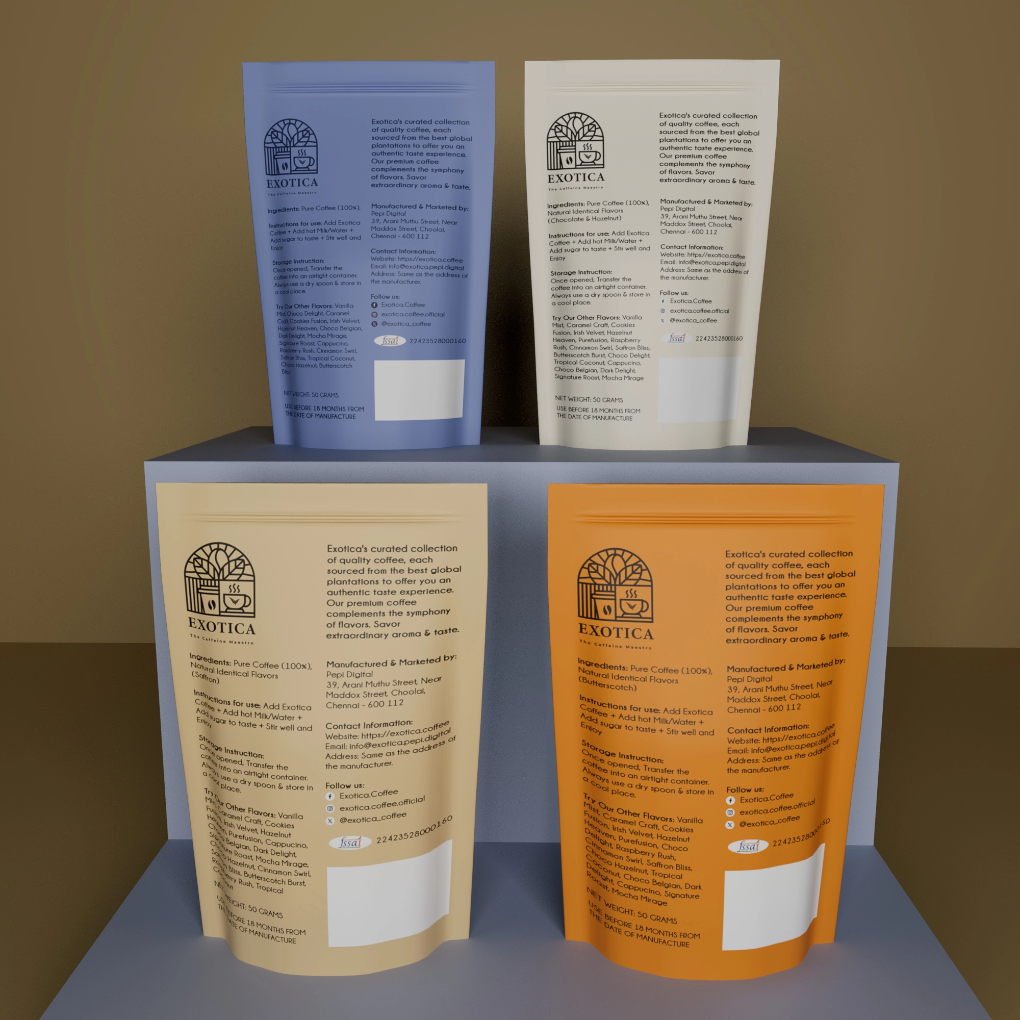 Pure Fusion, Choco Hazelnut, Saffron Bliss & Butterscotch Burst Coffee Combo